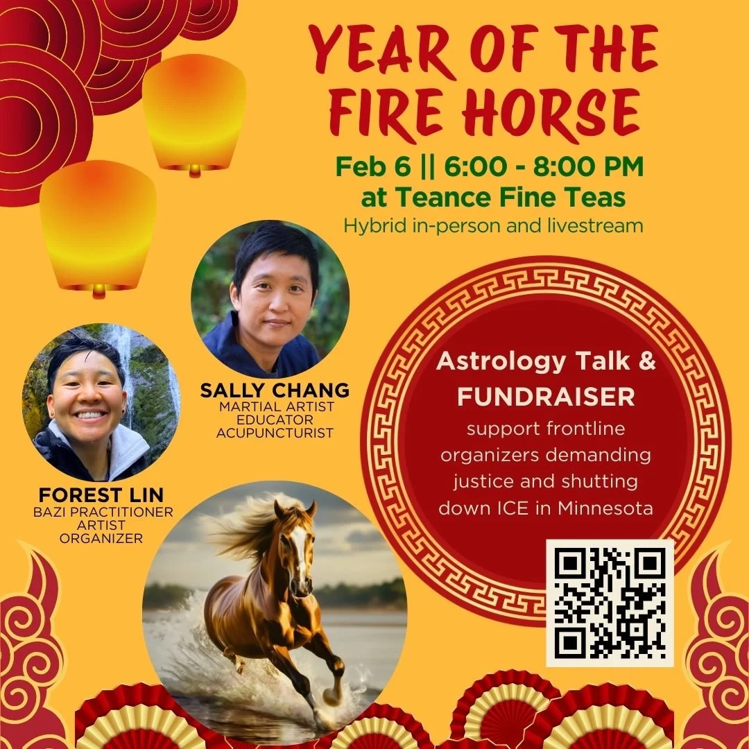Join Sally Chang and Forest Lin for a live astrological conversation exploring the nature of Horse energy and what this year invites from us individually and collectively. Together, we’ll reflect on how Fire Horse energy can fuel heart-led action and how it can potentiate transformation.